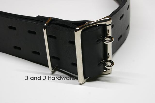 This monster of a locking buckle works the same as the one above, but it has two tongues, and is a full 2 inches wide. I will be completely honest and tell you that punching this by hand has to be a labor of love, because it is no easy task. We needed these for the production side of our business, so we had them made for us. We punch the leather for these in the same big press, but you can do it by hand - I personally know two people who do.