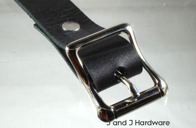 In the "in use" image you can see we added one of our 2 inch wide wire belt keepers , because in really heavy leather it is tough to tuck the tongue in the other half of the buckle. Add the keeper - a piece of cake, just skip the back half when using the buckle.