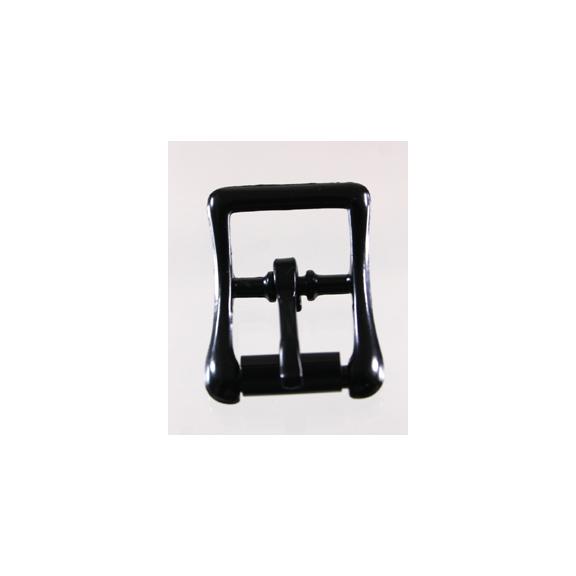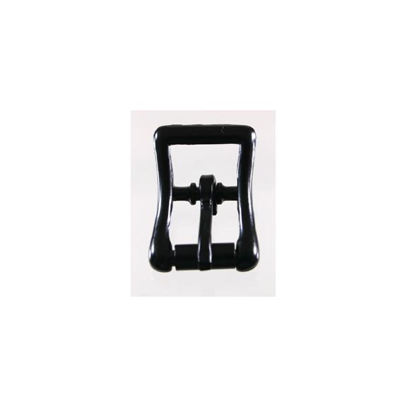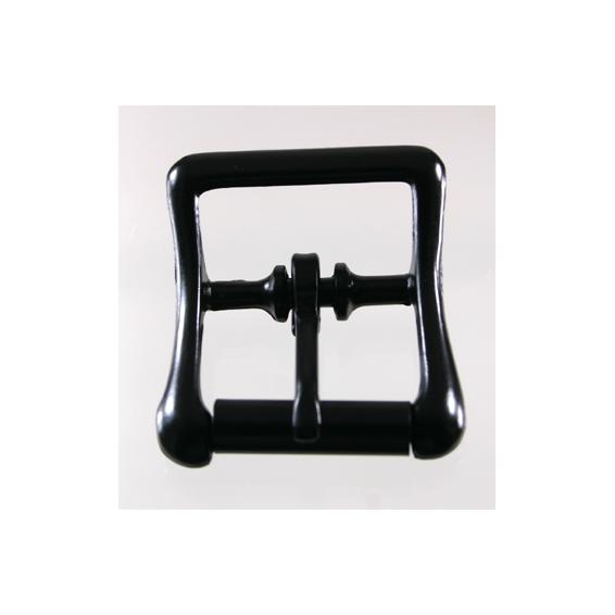 | Just like our True Roller Center Bar Buckles , except in a gloss black finish. They have a built in "keeper" so no additional hardware in required for use. In addition, they are true roller buckles (the little roller actually moves), unlike our other center bar buckles which use a glide pad instead of a roller. They do run a little more than those, but sometimes a roller just works much better than a glide pad. They are more "use friendly" (no binding), and are easier on the leather, especially when a good tug is appropriate. While these can be used in most applications, from light to heavy, for really heavy uses, like belts and larger dog collars we suggest our heavy roller buckles or the shiny black version . Shiny black plated die cast zinc (not dull black oxide) in the sizes listed in the chart below. Here's some additional information: What's all this about heel bar buckles, center bar buckles, cart buckles and such? |