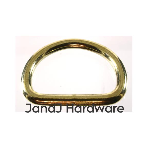 | By request we have added three sizes of brass plated heavy D rings (please note, not solid brass which is a lot more expensive). These are identical in every way to the same sized D rings found on our Heavy D ring page, where we offer a greater number of sizes in nickel plating. We provide 2 measurements, the first, in inches, is the inner diameter of the ring, this is measured at the straight part of the D, and, therefore, is the size of the material which will fit correctly into the ring. This dimension is just slightly generous (a 1" ring may measure 1.05") so that there is no binding. The second is the thickness, in millimeters, of the material itself. Separately we offer other styles of D rings which you can view from the menu to your left. Please see sizes available in the chart below. |