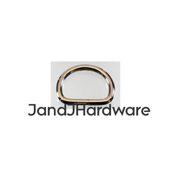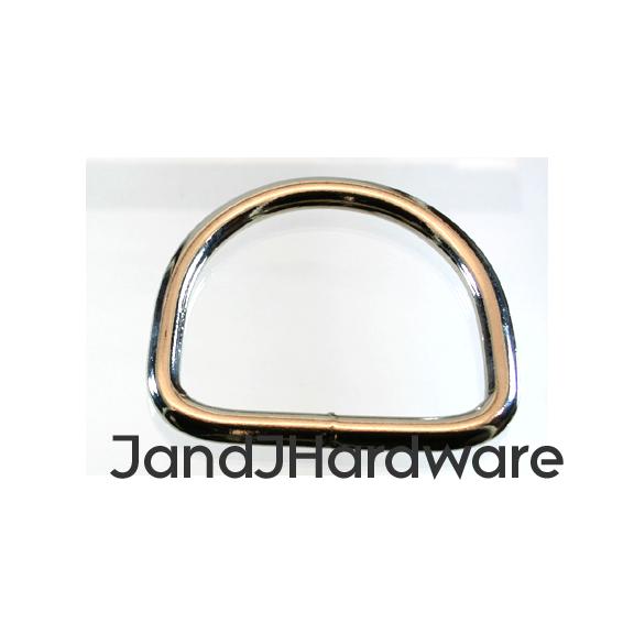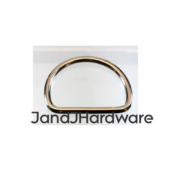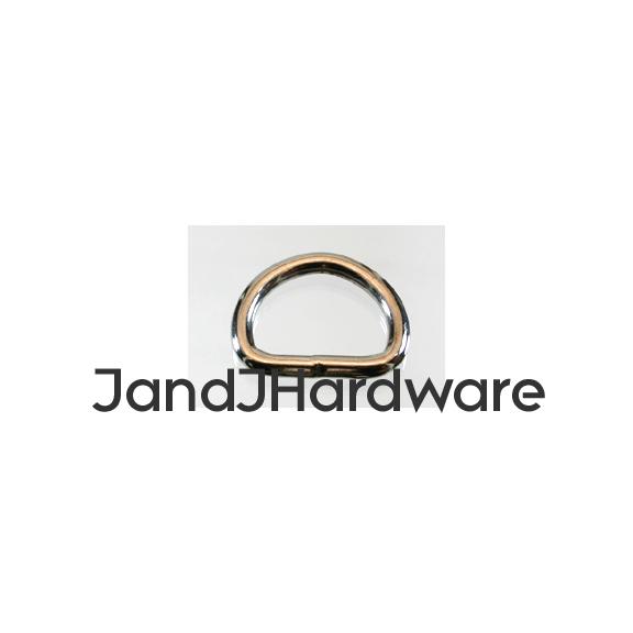 | Here we offer what we refer to as our "heavy D" selection. These are big and bulky D rings that are ideal for use in applications such as dog collars, plant hangers, belts, and many other uses where a D that can support some serious weight is needed. These are formed by bending stock wire into the correct shape, and then applying a weld to the point where they join. The finish is applied after that process is complete. This differs from cast rings, which are poured as molten metal into a mold, and the resulting product is without a weld, and one solid piece. The welded wire rings (these) are by far both the most common, and the least expensive. We provide 2 measurements, the first, in inches, is the inner diameter of the ring, this is measured at the straight part of the D, and, therefore, is the size of the material which will fit correctly into the ring. This dimension is just slightly generous (a 2" ring may measure 2.05") so that there is no binding. The second is the thickness, in millimeters, of the material itself. Separately we offer other styles of D rings which you can view from the menu to your left. Please see sizes available in the chart below. |