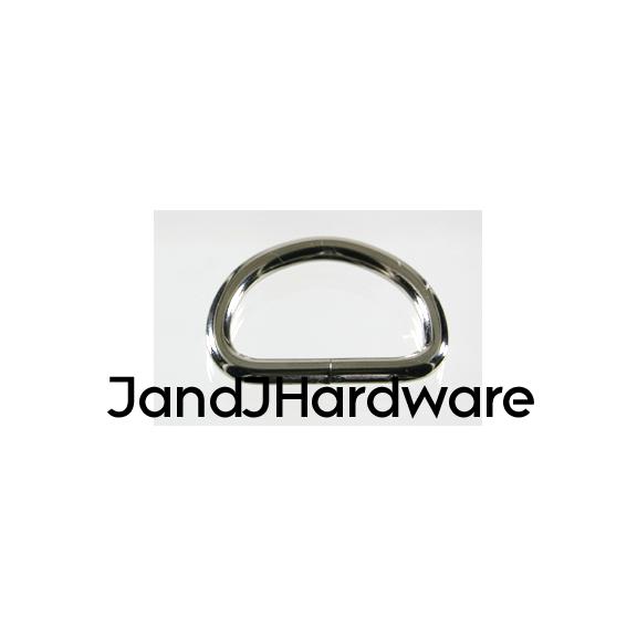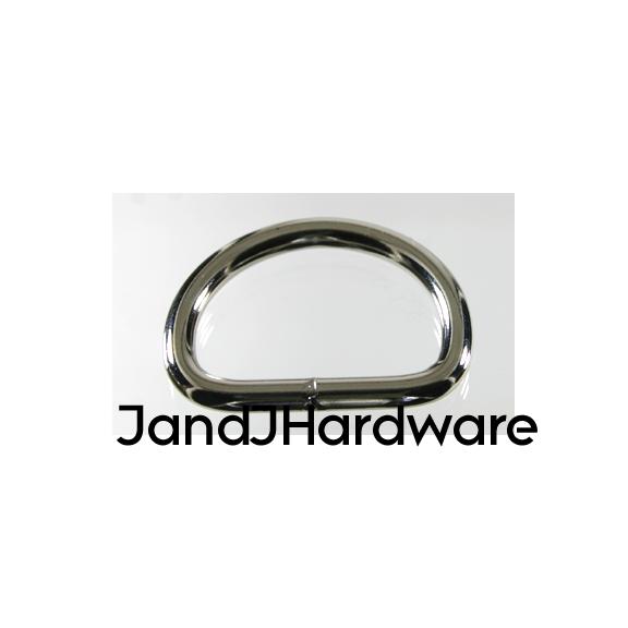 | These light weight welded D rings are a more rounded contour than either of our other version of light weight D rings ( here and ) . For heavy leather use, our heavy D rings are the usual choice, but for lighter weight garment leather, or fabric, vinyl, macrame and so forth this might be better suited for your purpose. These are welded D rings, so they perform much better than a non-welded one would. These are made by forming wire (of the diameter specified in the listing) in the shape of the D ring. The seam at the base (hidden by your material when in use) is then welded, and finally the plating is applied. This differs from cast rings, which are poured as molten metal into a mold, and the resulting product is without a weld, and one solid piece. Non-welded wire rings are missing the weld at the joining point and are inherently much weaker, under load they can simply bend open. The measurement, in inches, is the inner diameter of the ring, this is measured at the straight part of the D, and, therefore, is the size of the material which will fit correctly into the ring. This dimension is just slightly generous (a 2" ring may measure 2.05") so that there is no binding. You can view the other D rings available in our line by looking at the navigation bar to your left. Please see sizes available in the chart below. |
