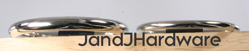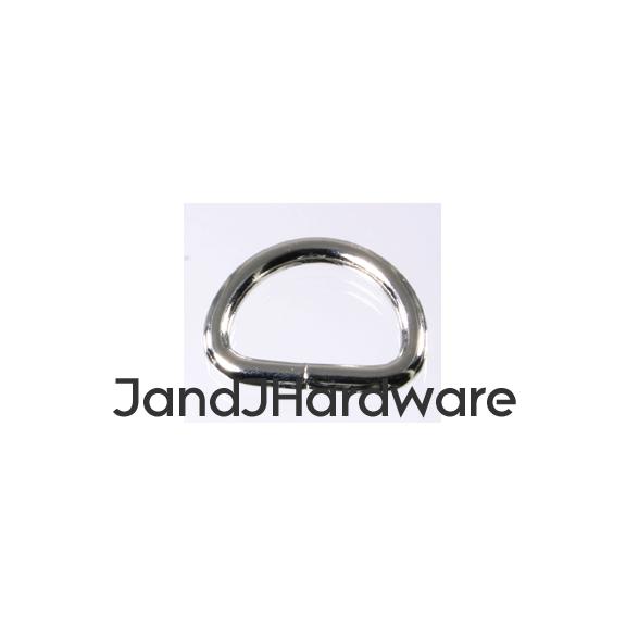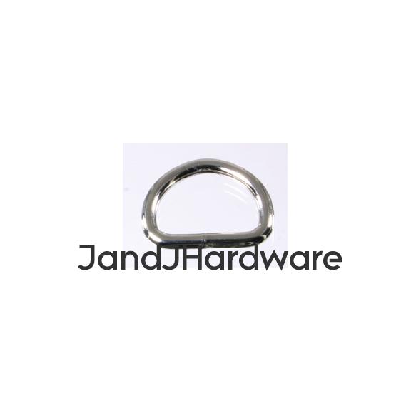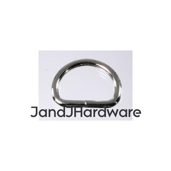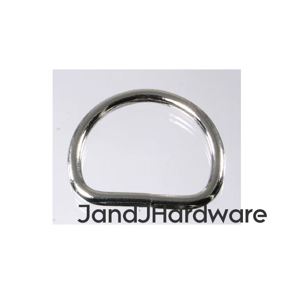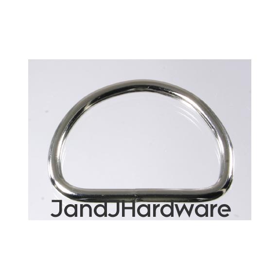| These are our new light weight D rings. For heavy leather use, our heavy D rings are the usual choice, but for lighter weight garment leather, or fabric, vinyl, macrame and so forth this might be better suited for your purpose. These are welded D rings, so they perform much better than a non-welded one would. These are made by forming wire (of the diameter specified in the listing) in the shape of the D ring. The seam at the base (hidden by your material when in use) is then welded, and finally the plating is applied. This differs from cast rings, which are poured as molten metal into a mold, and the resulting product is without a weld, and one solid piece. Non-welded wire rings are missing the weld at the joining point and are inherently much weaker, under load they can simply bend open. These are available in sizes up to 1 1/2", and also are available smaller than our heavy D rings. We provide 2 measurements, the first, in inches, is the inner diameter of the ring, this is measured at the straight part of the D, and, therefore, is the size of the material which will fit correctly into the ring. This dimension is just slightly generous (a 2" ring may measure 2.05") so that there is no binding. The second is the thickness, in millimeters, of the material itself. Separately we offer other styles of D rings which you can view from the menu to your left. Please see sizes available in the chart below. |