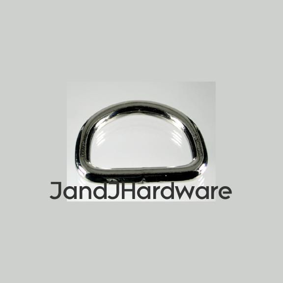 | These light weight welded D rings are a slightly different contour than our other version of light weight D rings . They are available in a more limited number of sizes than the others. For heavy leather use, our heavy D rings are the usual choice, but for lighter weight garment leather, or fabric, vinyl, macrame and so forth this might be better suited for your purpose. These are welded D rings, so they perform much better than a non-welded one would. These are made by forming wire (of the diameter specified in the listing) in the shape of the D ring. The seam at the base (hidden by your material when in use) is then welded, and finally the plating is applied. This differs from cast rings, which are poured as molten metal into a mold, and the resulting product is without a weld, and one solid piece. Non-welded wire rings are missing the weld at the joining point and are inherently much weaker, under load they can simply bend open. We provide 2 measurements, the first, in inches, is the inner diameter of the ring, this is measured at the straight part of the D, and, therefore, is the size of the material which will fit correctly into the ring. This dimension is just slightly generous (a 2" ring may measure 2.05") so that there is no binding. The second is the thickness, in millimeters, of the material itself. You can view the other D rings available in our line by looking at the navigation bar to your left. Please see sizes available in the chart below. |