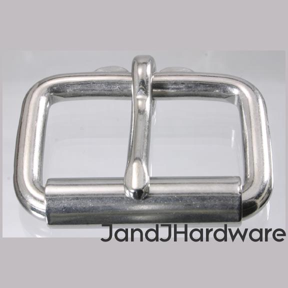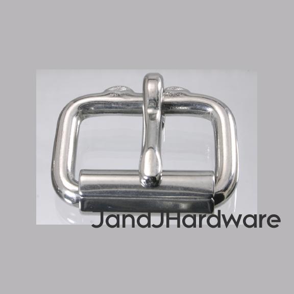 Pure stainless steel heavy duty free roller buckles. This means that little roller you see actually rolls. Please note that this is not the case with some "roller" buckles. As a one sided buckle, these usually require some sort of keeper for the belt tongue, like our stainless steel belt keepers . These buckles will not be stopped no matter how bad the weather or the exposure. Pure 304 stainless steel, they have a bright finish (nickel plated is slightly brighter), and look great forever. For lighter weight or fabric applications we suggest our variety of center bar buckles available from the list to your left. Solid stainless steel in the sizes listed in the chart below. Here's some additional information: What's all this about heel bar buckles, center bar buckles, cart buckles and such? |